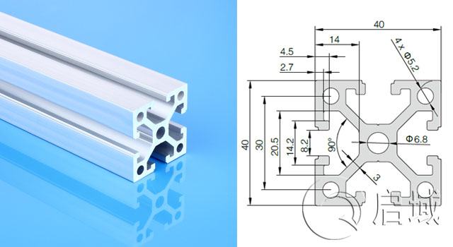 型材货号:QY-8-4040EW(40*40欧标直角重型,8mm槽系列)应用说明:广泛应用于大应力、高强度、支撑要求高的重载结构的框架组合,以及汽车、工厂自动化、工业模块结构等特殊领域,是工业框架应用广泛的型材之一。配套螺栓螺母:它通常采用40系列M8专用T型螺栓与M8法兰螺母内部连接,或用40系列T型螺母与内六角螺栓配套使用,如受力强度大可采用40系列滑块螺母与内六角螺栓配套使用,坚固可靠结实。