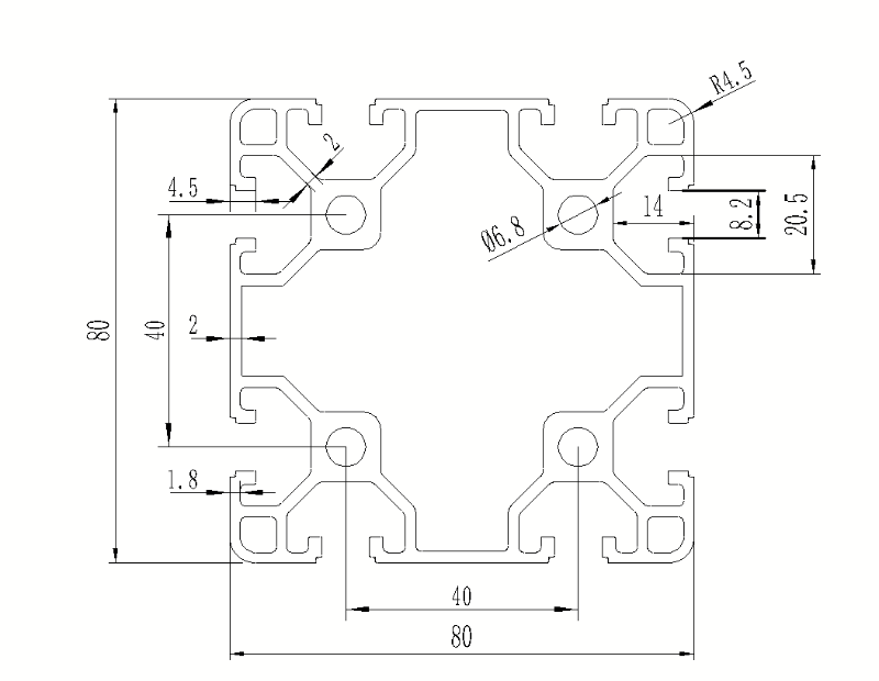 糖心VLOG破解免费一起来看一下这个截面图纸,糖心VLOG破解免费先看它的壁厚,因为糖心VLOG破解免费在选型上面主要是先看壁厚是否能满足糖心VLOG破解免费定制框架的要求,这款型材它的壁厚只有2毫米,它的槽宽是8.2毫米,从槽宽上面我就知道它的使用配件规格,使用40系列规格就可以了。